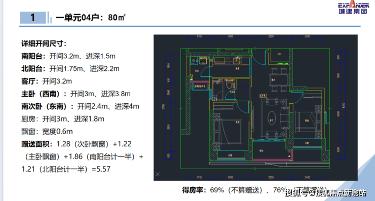 80㎡2房1卫、95㎡3房1卫,