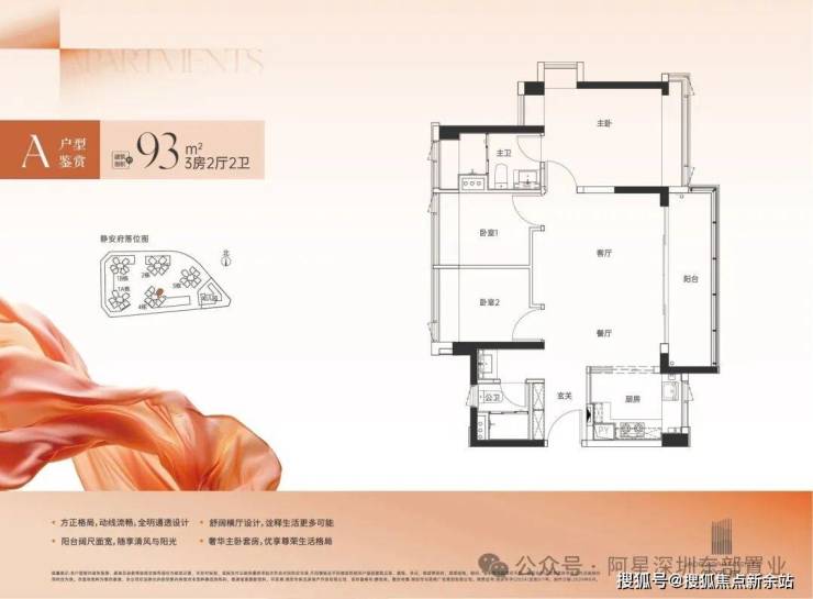 约93㎡三房2卫:大横厅、全明方正、通透布局,诠释生活空间的尺度与交互,三代同堂舒居优选。