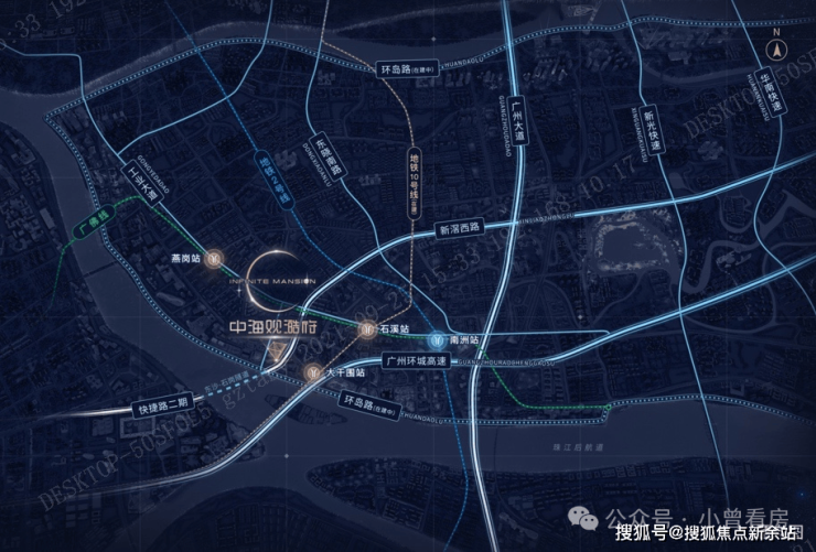 路网交通:项目南侧在建东沙-石岗隧道快捷路,往西南方向经隧道5分钟直达广船商业创新区,往东北方向连结新滘西路和广州大道20分钟内直达珠江新城及琶洲,避开堵塞严重的工业大道路段,快速通行。