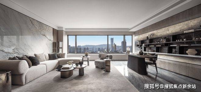 200㎡户型硬装设计为灰白绿色调,定制全铜入户门+隐藏智能门锁,地面天然石材设计;赠送客厅背景墙、木饰面及全屋玻纤壁布。142㎡户型采用定制灰调,天然木质与岩板搭配,柜体材质选用天然影木木皮面板加灯带设计,软装设计搭配皮革、木质、岩石、贵金属,运用不同材质的交叠,与空间体量呼应。