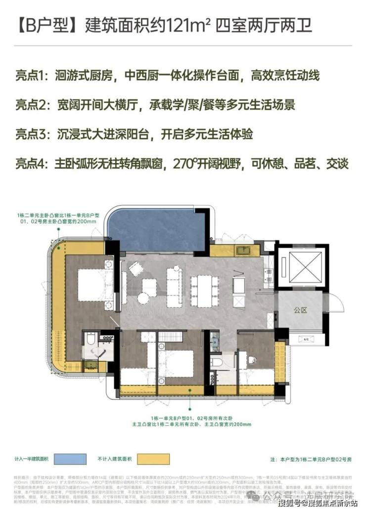 建面约121㎡开阔横厅高配四房;
