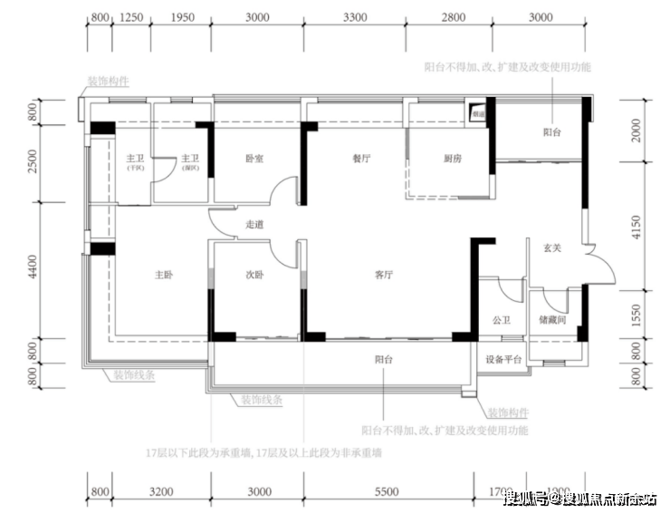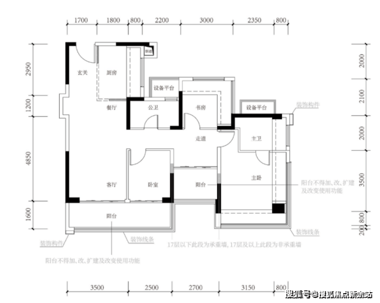 竖厅 LDKB 一体化,3.5 米客厅,四开间朝南。主卧 17.98㎡,次卧均≥7.75㎡,L 型厨房,公卫干湿分离。连接 9.6㎡观景阳台,东南 / 西南向,含赠送得房率约 100%。折后单价 5.0-5.41 万 /㎡,总价 515-580 万 / 套。