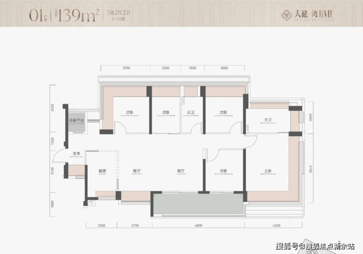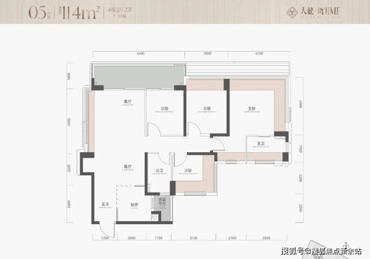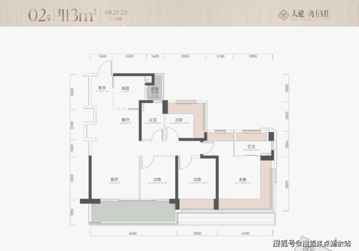 户型产品为113㎡ 4房和139㎡ 5房 约290套,2栋100米内31层住宅,2梯4户,其中主力为113㎡ 4房,具体户新图暂未公布。