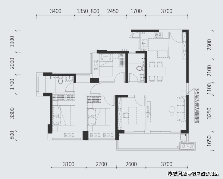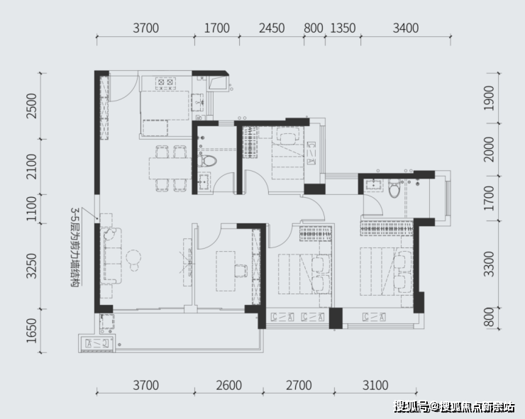 全明四开间 享充盈阳光盛景 卫浴三分离 居家清爽洁净