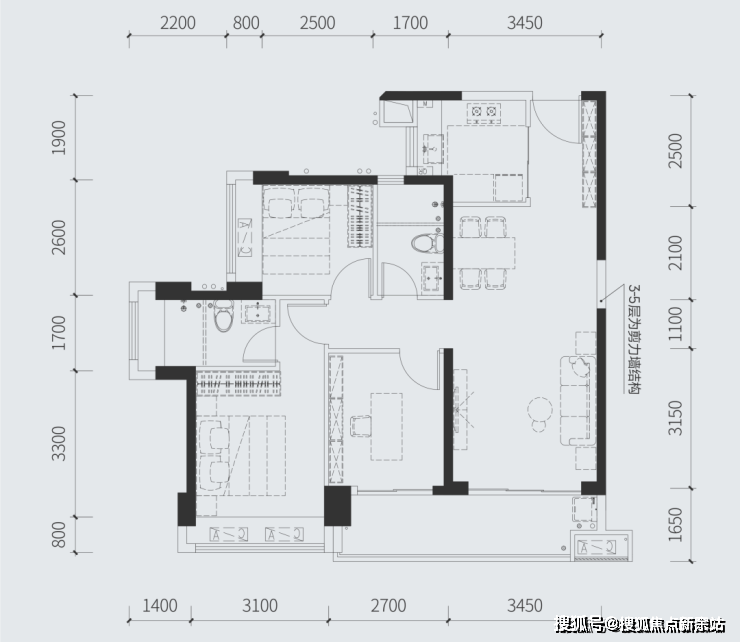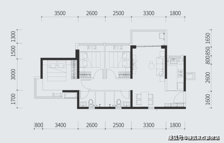 1、市面上难得八十多平做到真正的三房两卫,同片区小面积户型多为1卫或1.5卫