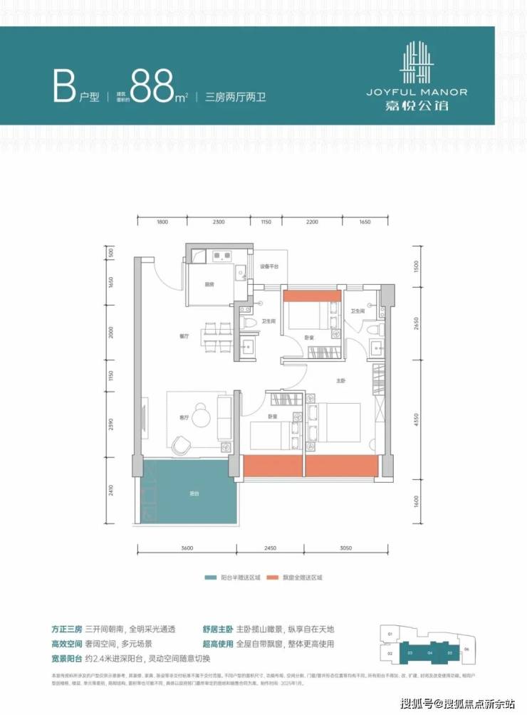 户型区间:72-99㎡三至四房,精装交付,实用率领先市场