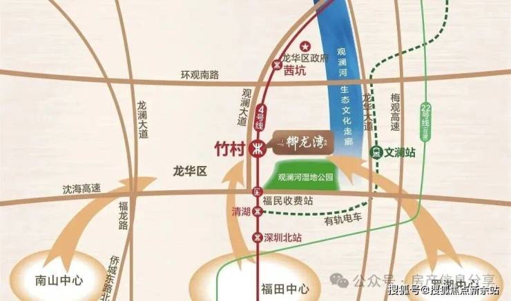 御龙湾西园紧邻地铁4号线竹村站,是观澜方向进入龙华区的首站,可便捷连接福田口岸、深圳北站等核心区域。根据最新运营数据,4号线工作日高峰间隔6分钟,平峰间隔6分钟,全天运营时间为06:36-23:54,为居民提供高效便捷的轨道交通服务。