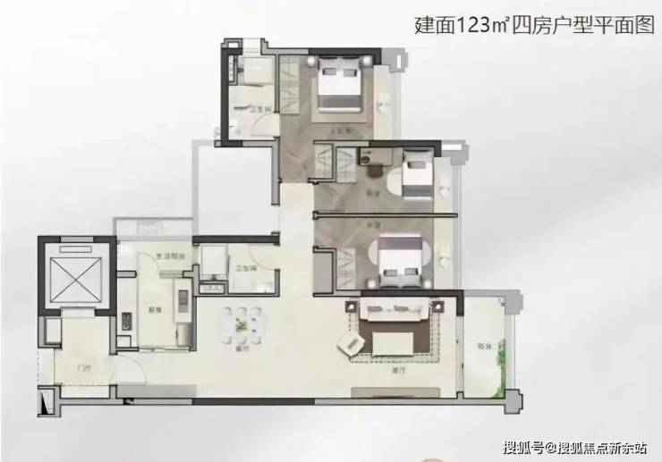广州城投东园公馆占地面积仅为8470㎡,规划了4栋21-23层住宅,整体容积率高达5.8;其中,南端的4#住宅为回迁房,其余3栋则为商品房,均为塔楼设计。