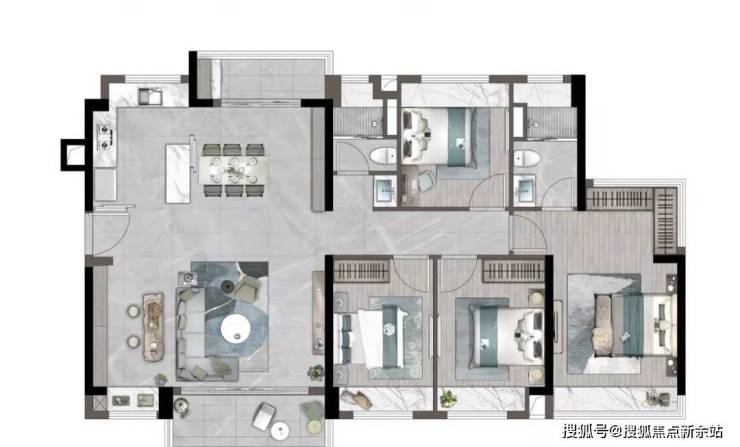 「建筑面积约98㎡丨四房两厅两卫」LDKG一体化阔绰设计南北通透全景双阳台创新可变空间星级主卧臻优套房联动式餐客厅U型大厨房