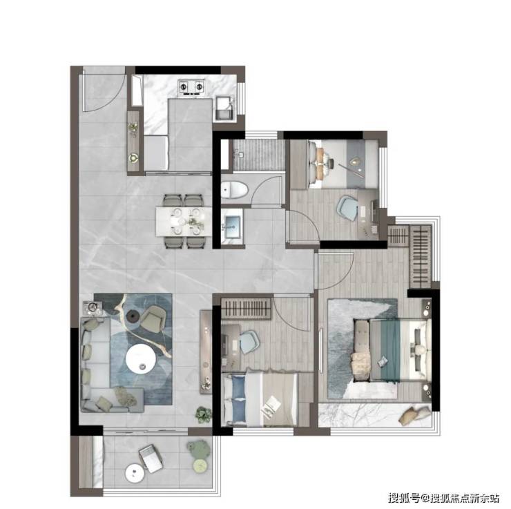 「建筑面积约89㎡丨三房两厅两卫」LDKG一体化设计U型厨房约6米双面宽超大景观阳台独立卧室带独立卫浴主题设计儿童房