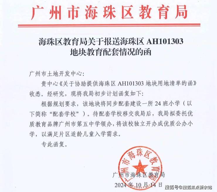 重要的是,根据2024年10月海珠区教育局公示,这所配建的学校将委托广州市第五中学领办。