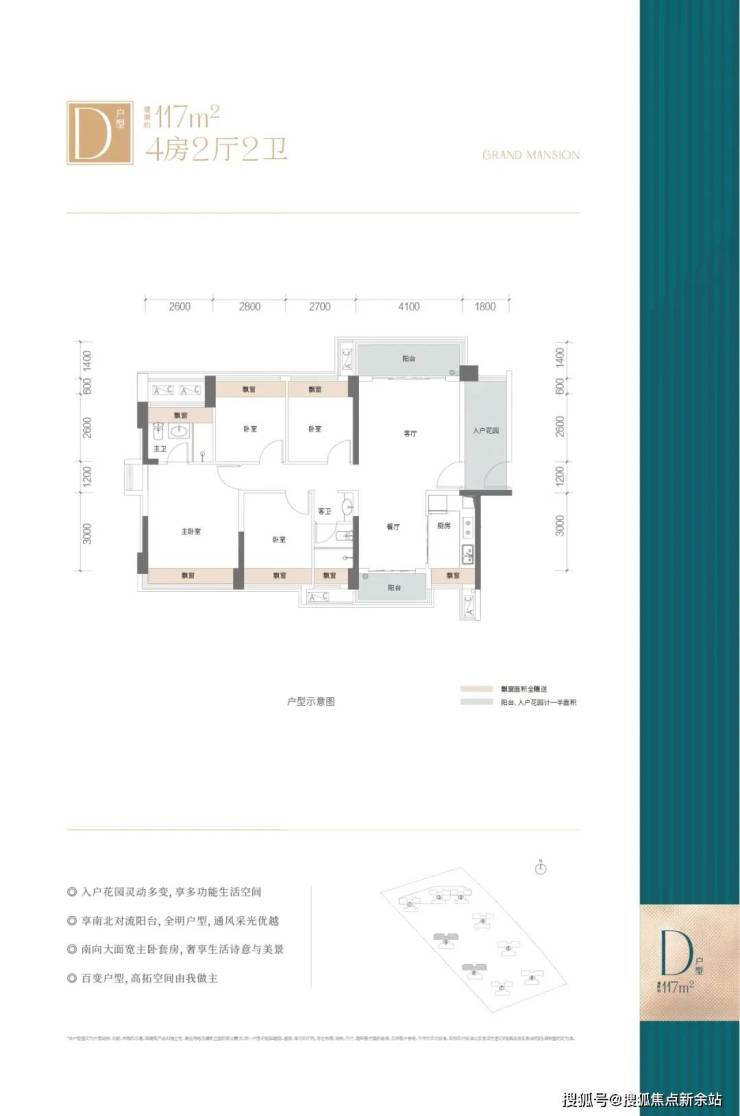 建面约117平,自带一个全赠送的入户花园,为生活释放更多想象。