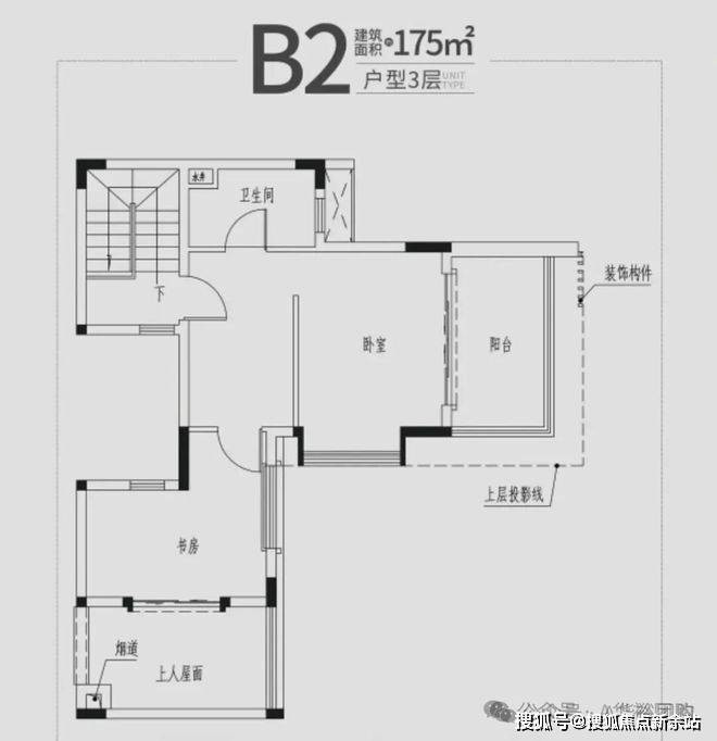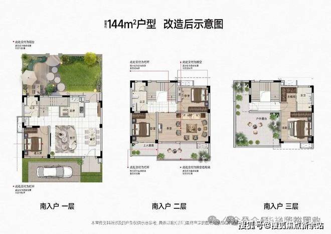上叠:三层结构,顶层附赠约75㎡星空露台,可打造空中花园、观星茶室或私人派对空间;一层阳台打通后开间可达约10米,搭配挑空客厅,空间感与仪式感并存。
