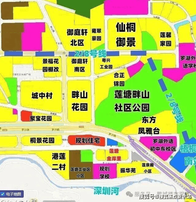 教育:自带 1 所公办 9 班制幼儿园,楼下还在建 36 班九年一贯制学校。学区方面,小学划入第 24 大学区,涵盖莲南小学、罗湖外语小学等 7 所学校;初中学区对应罗湖外语初中学校,该校在罗湖区均分排名前三。
