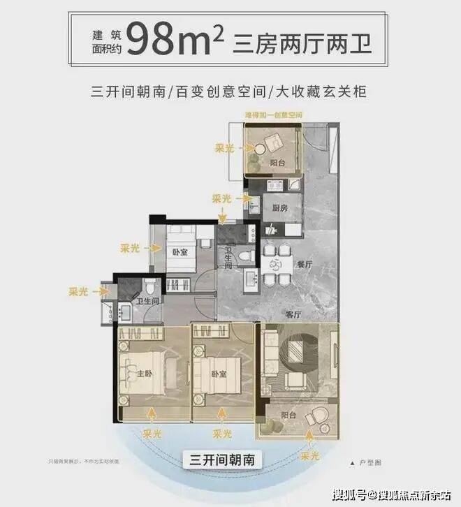 【高层户型鉴赏-超95%南向户型设计,高拓展高赠送】