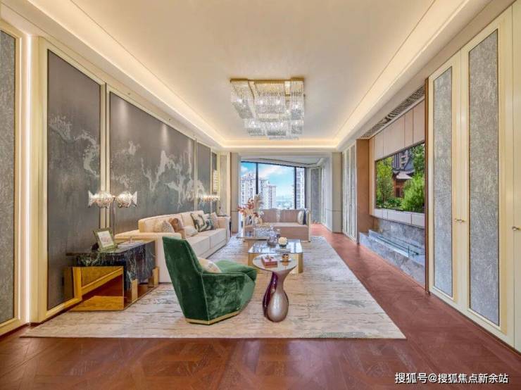 江天交汇的观景大横厅,私藏近17米南向静谧江景、都市繁华、东方园林,稀贵盛景恢弘宽广