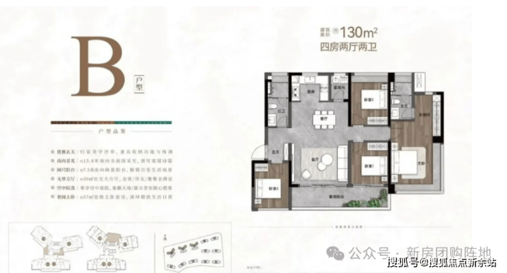 首推户型:首推 1、4 栋,约 125-130-169㎡四房