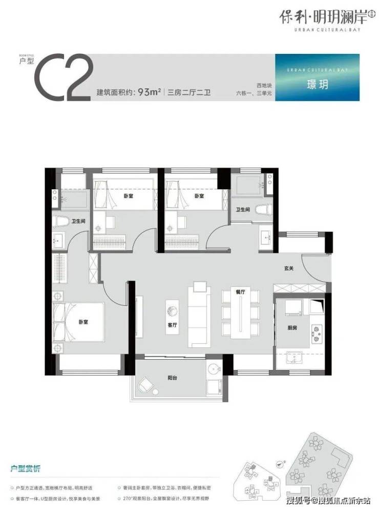 ·方正户型,通透舒居:户型方正,全明采光,科学动静分区;大面宽设计、阔绰景观阳台,将自然盛景融入日常;兼具雅致主卧套房,畅享生活的便捷私密;