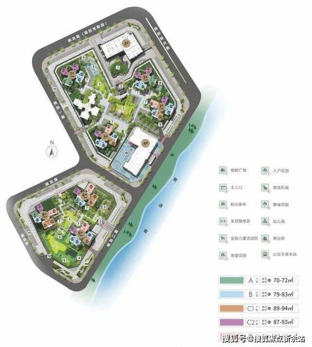 项目整体以塔楼围合式全南向排布,4.5低容积率,宽绰楼间距,片区罕有的纯南向河景视野、雅致中心园林,营造一线亲水的舒居体验,对位现代人居品质需求。建面约70-113㎡2-4房,覆盖全家庭周期,高使用率,满足成长家庭型家庭的复合需求。全南向采光,通风优异,收揽河岸风光与马峦山景观,奢阔空间享受,舒适生活体验。