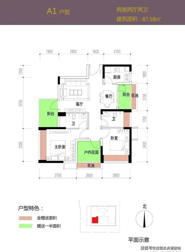 建筑面积约87㎡户型与82平方米户型为相似户型,相对安静。