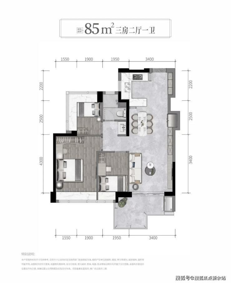 星奕府这次新品加推,主力为面积约85-94-110㎡的3-4房。