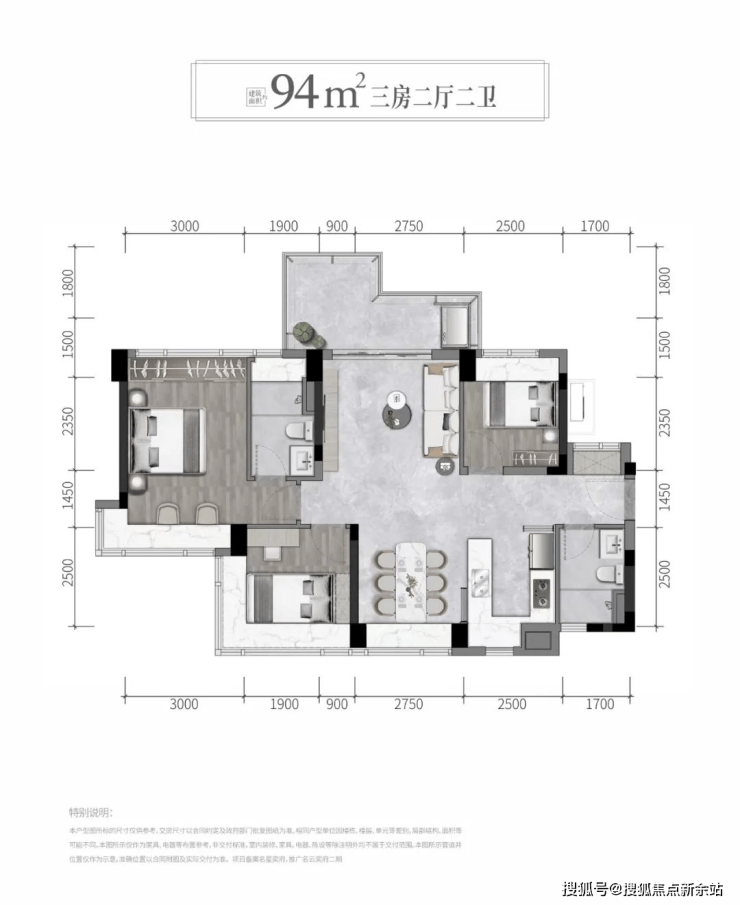 建面约94㎡的三房两厅两卫,做出了非常难得的南北通透、双面采光,尺度感不亚于市面上总价千万级的“豪宅大三房”,居住舒适度简直满分。