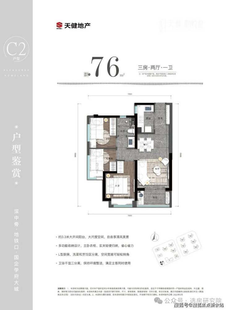 约76㎡|动静分区 精致三房