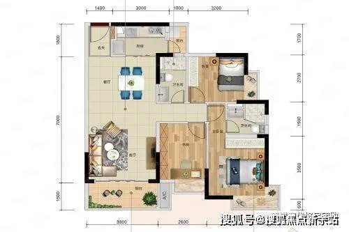 建筑面积约119㎡C户型,四房两厅两卫设计。温馨四房一步到位,三代同堂共享天伦;独立玄关,杂物陈列有序,出入更为方便,且配备飘窗,出入都有清风阳光相迎;厨房L型设计,合理烹饪动线;6.7米大尺度横厅,采光面更加开阔。