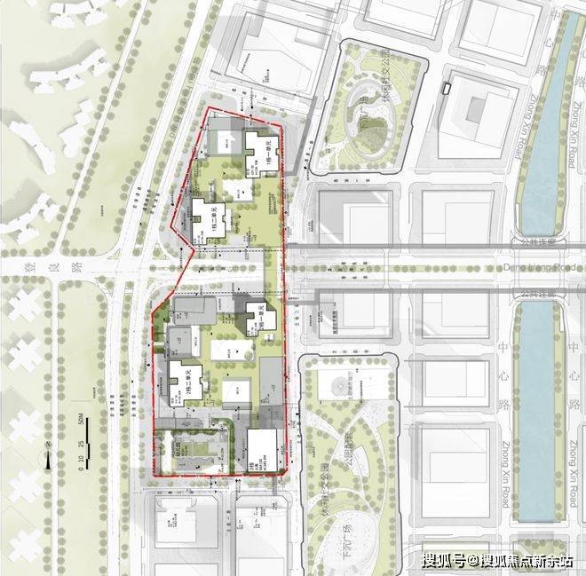 建筑规划:5栋超高层塔楼(4栋住宅+1栋公寓),高度分别为150米、200米、200米、240米(住宅)及250米(公寓)