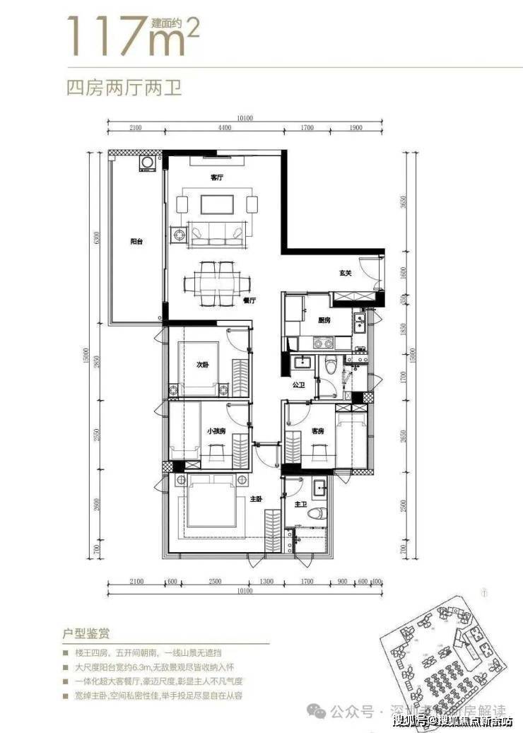 ■116㎡南北通4房2卫:116平享130平空间感/L型大阳台