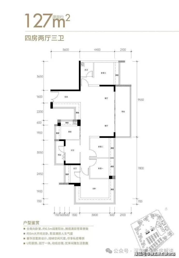 ■127㎡瞰山楼王4房3卫:南北通/全南6开间/一线山景无遮挡