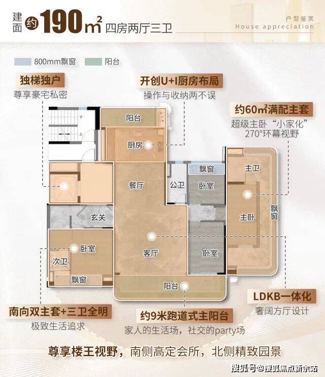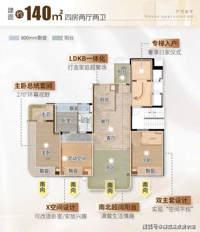 采用全南向板楼设计,120%使用率,层高3米以上,部分楼栋达3.3米,配备全景玻璃幕墙,减少实体墙,采光面最大化。