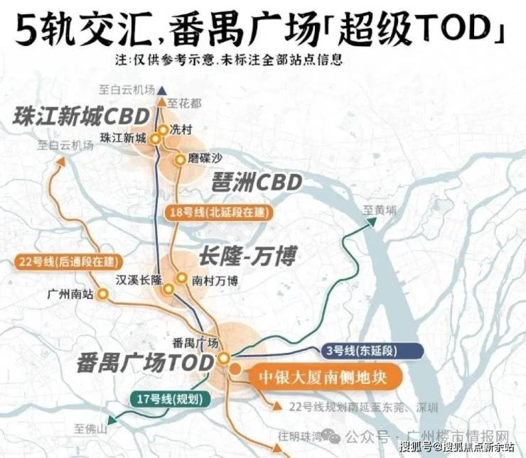 其中18号线、22号线为时速160公里的高速地铁,30分钟直达珠江新城、琶洲、南沙横沥等核心区域。自驾可通过亚运大道、番禺大道快速通达全城,但高峰时段番禺大道易拥堵。