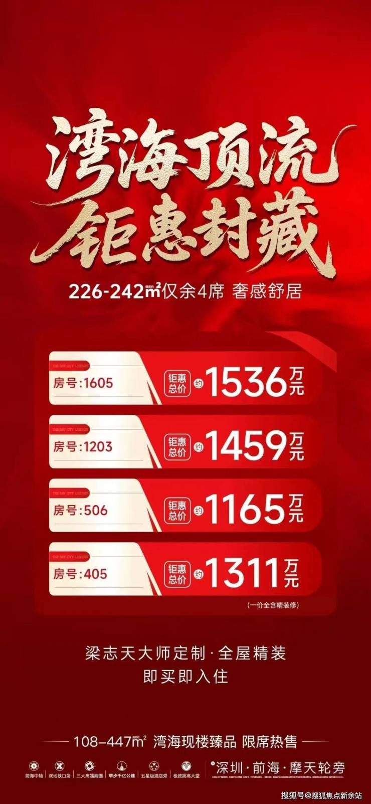 SCT 湾流|宝中核心 C 位 108-447㎡纯大户奢居 主力户型 220-440㎡,总价 1200-3000 万级 雄踞宝中核心,执掌 4000 亿资本引擎;推窗即揽湾区之光摩天轮、欢乐港湾等滨海文旅地标,壹方城等繁华商业环伺,塔尖圈层专属稀缺资产。