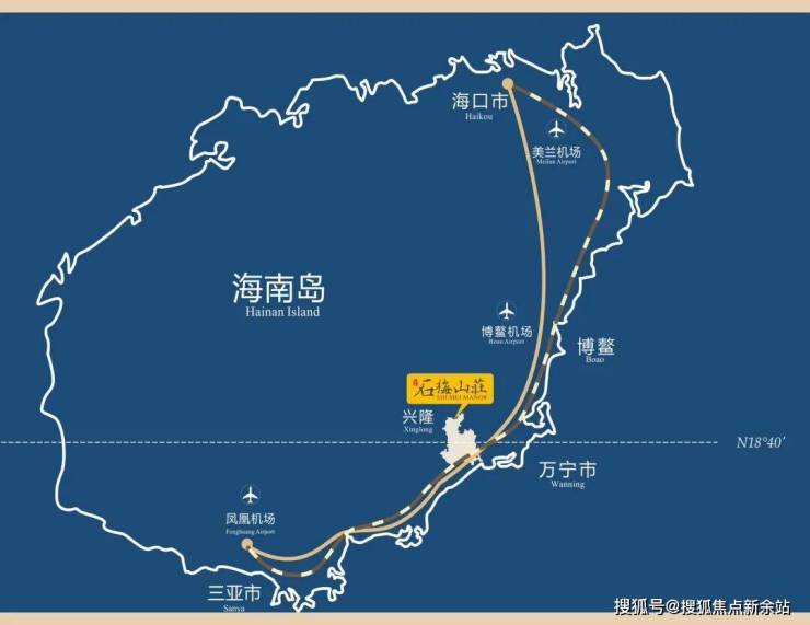 • 3大机场:海口美兰机场(约140公里) 、三亚凤凰机场(约98公里) ,琼海博鳌机场(约54公里)
