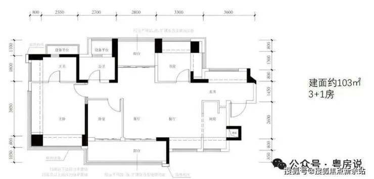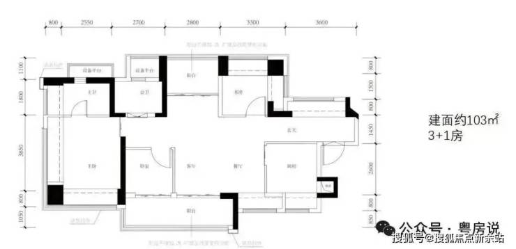 103㎡4房2厅2卫,折后单价5.12-5.44万/㎡,总价525-560万