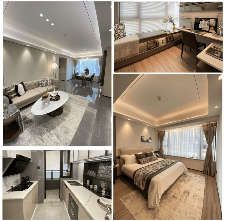精装:一线精装 质感生活质感生活,品质如一。所有楼幢住宅门窗升级日本YKK系统铝合金门窗,玻璃均采用信义隔音隔热双层中空玻璃、卫生间窗内装百页、YKK原厂通风置气装置,精装采用澳创新、欧派橱柜、多乐士、道格拉斯、飞利浦净水器等一线品牌精装,追求整洁和轻奢格调,凸显质感生活体验。
