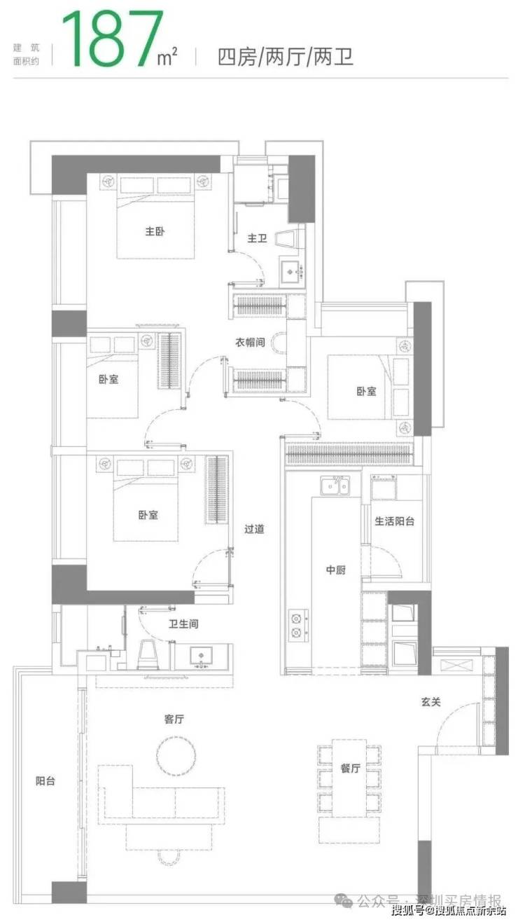 建面约187m² 四房两厅两卫