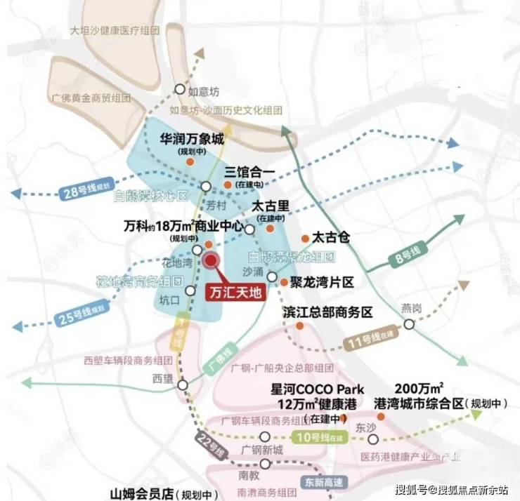 此外花地湾片区基本都是由万科统一开发,汇合白鹅潭-花地湾-聚龙组团的板块张力,白鹅潭核心区、聚龙组团、花地湾组团,于半径约2KM内构建珠江西岸CAZ黄金三极。