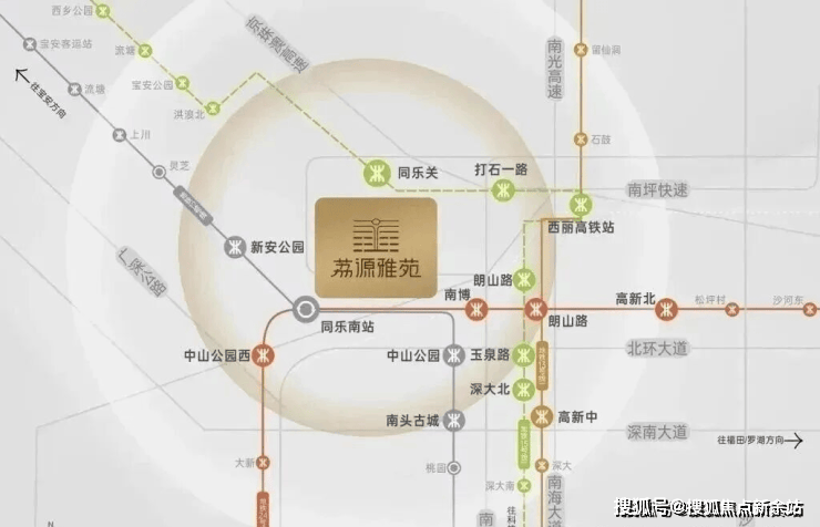 同乐公馆,位于深圳南山区南头街道同乐社区中山园路229号,地处南山区与宝安区交界处,毗邻中山园路与南坪快速交汇处北侧。项目占据"南山科创芯"核心位置,是深圳湾-科技园-西丽科创中轴的关键节点,直线距离仅3公里范围内覆盖科技园、前海自贸区及留仙洞总部基地三大产业核心区。西丽高铁新城(在建中,预计2028年投入使用)的规划进一步提升了区位价值,该枢纽将形成"4高铁+2城际+4地铁"的超级换乘网络,规模超过深圳北站,成为全国最大的轨道交通换乘站之一。