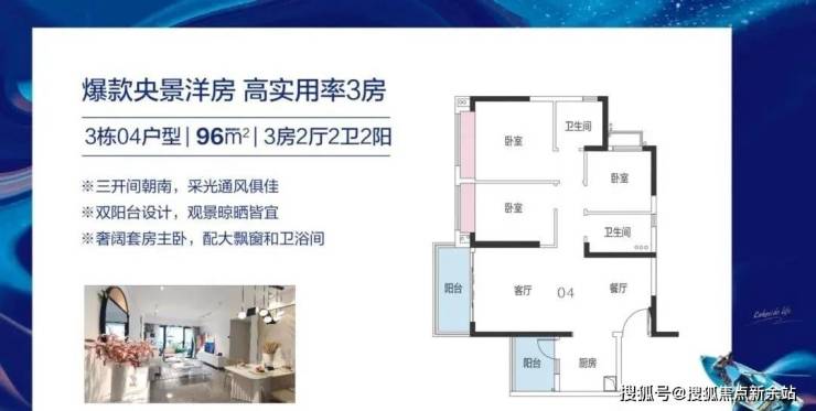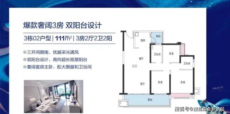 建筑面积约95㎡的舒适三房,双阳台设计,一边用于晾晒,一边用于观景,实用性满分。