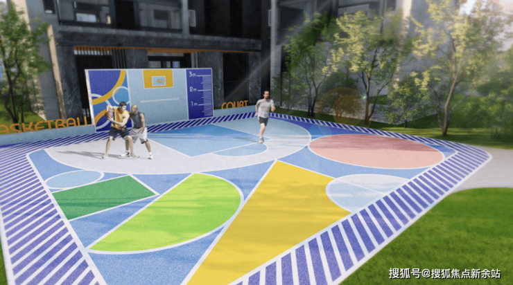 【运动健身区】包含篮球场、羽毛球场和乒乓球场