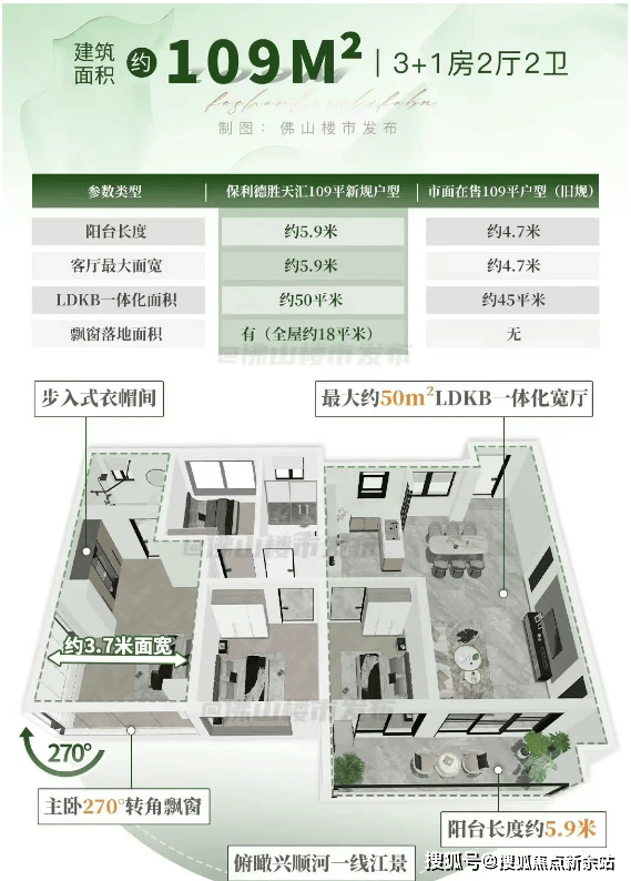 109㎡3+1房:双卧朝南,明厨明卫,总价约163万元起,首次置业家庭首选;