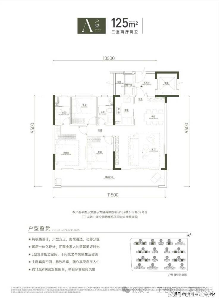 图中右下角4种颜色,对照选择户型所在位置