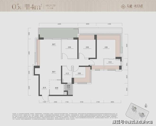 户型为113㎡四房114四房和139㎡五房约290套,2栋100米内30层住宅,2梯5户,其中主力为113㎡四房,整体以朝南及西南为主,有两套朝东北面向金众。