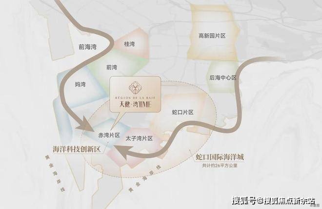「天健湾时代府」位于南山赤湾片区,属蛇口招商街道,是南山区的西南海角,东临蛇口太子湾,西接前海自贸区。这个天然位置优势可以两头吃,是深圳未来两大高预期发展区域的桥梁。