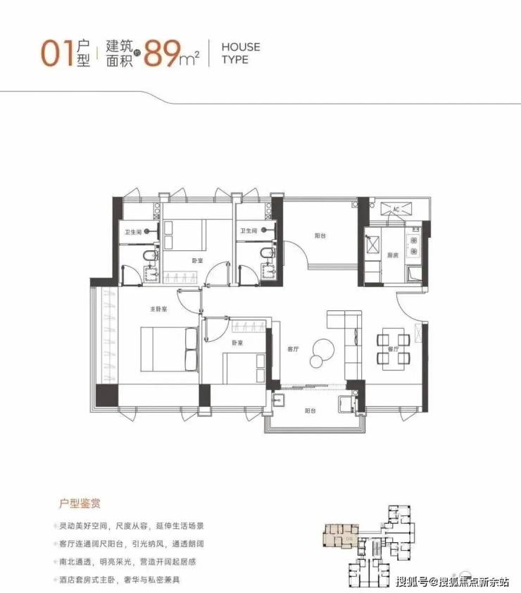 新规后户型,66㎡的2房1卫,75㎡的3房1卫,82㎡的3房2卫,8,9㎡的4房2卫。