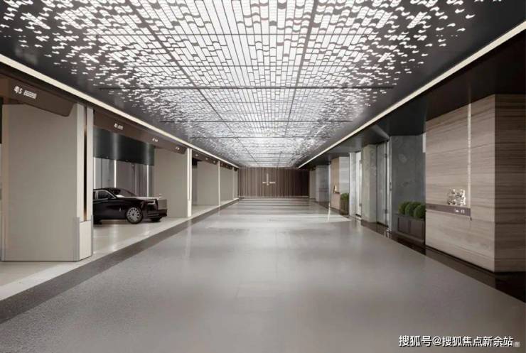 TOP级奢装车库:悦府二期打造东莞TOP级高定奢装车库,约1:3超高户位配比,加宽双车道以高强度耐磨石材铺装,劳斯莱斯式梦幻星空顶棚车道,出入之间,抬眼即为峯景。