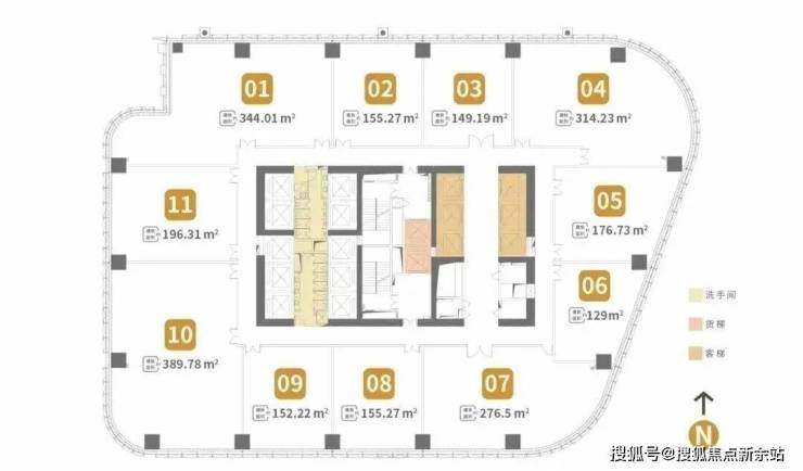 【层高】:标准层高4.2米,超高区(48F以上)4.5米