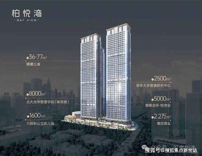 约 37 万㎡200 米深湾超级地标垂直综合体,涵盖约 36-77㎡精奢公寓、约 2.2 万㎡潮流商业、约 5000㎡精英会所,配建北大光华管理学院、清华大学港澳研究中心及六班制公立幼儿园。
